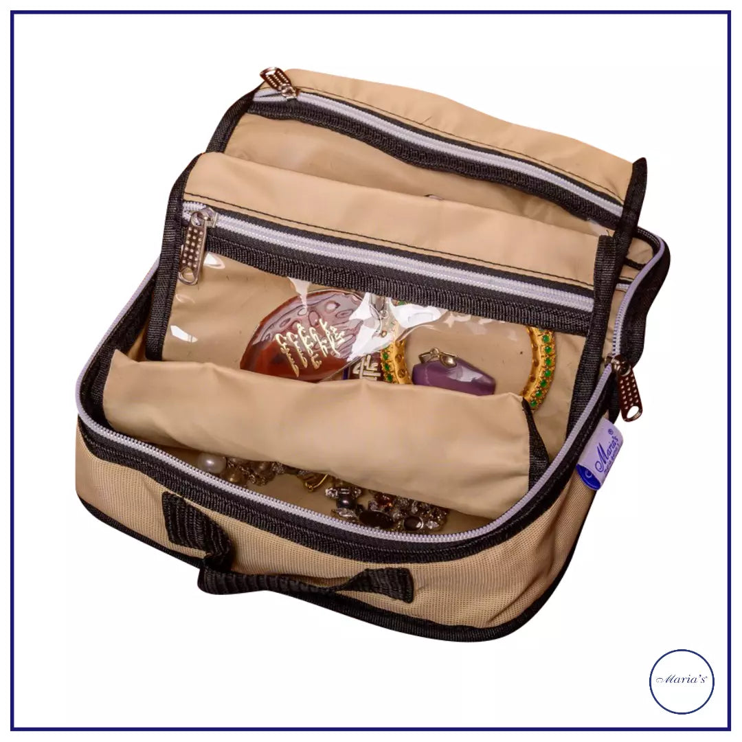 Keep your jewelry neat and tidy with this travel-friendly jewelry pouch. It comes in a clean look in varying colors like blue, pink, off-white, light-green, yellow, or black. Made with parachute, it also has an attached pocket for your earrings and tops. Order one today.