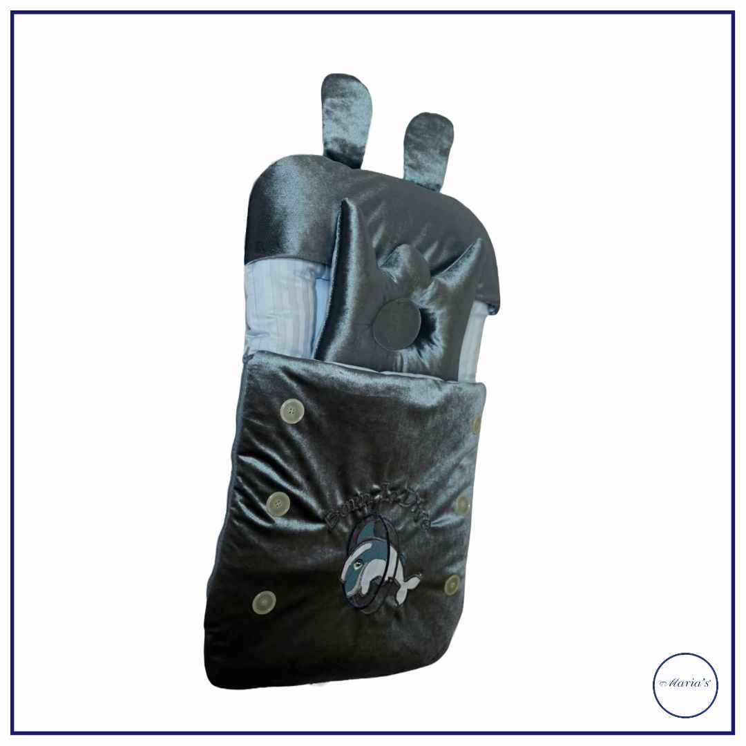 Velvet Carry nest With Fish Embroidery & Pillow